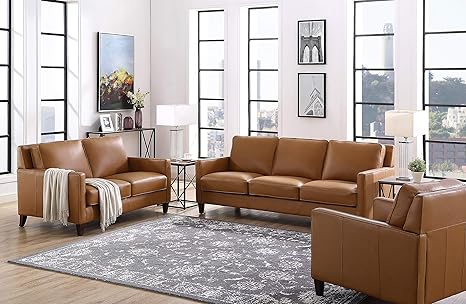 Hydeline Ashby 100 Leather Sofa Set Sofa Loveseat Chair Cognac
