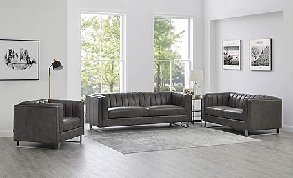 Gray Color Plush Comfort Bonded Leather 3pc Sofa Set Cushion Sofa Loveseat And Chair Living Room Furniture