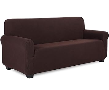 Jersey Stretch Form Fit Couch Cover 3 Pc Slipcover Set Sofa Loveseat Chair Covers Chocolate Brown Color