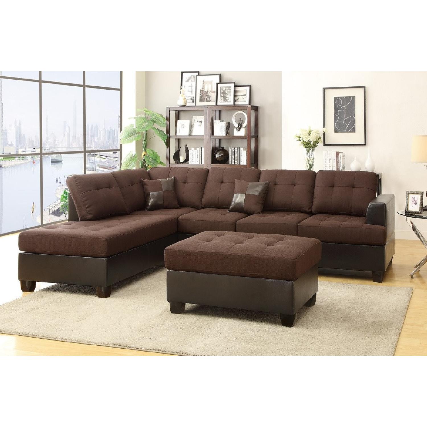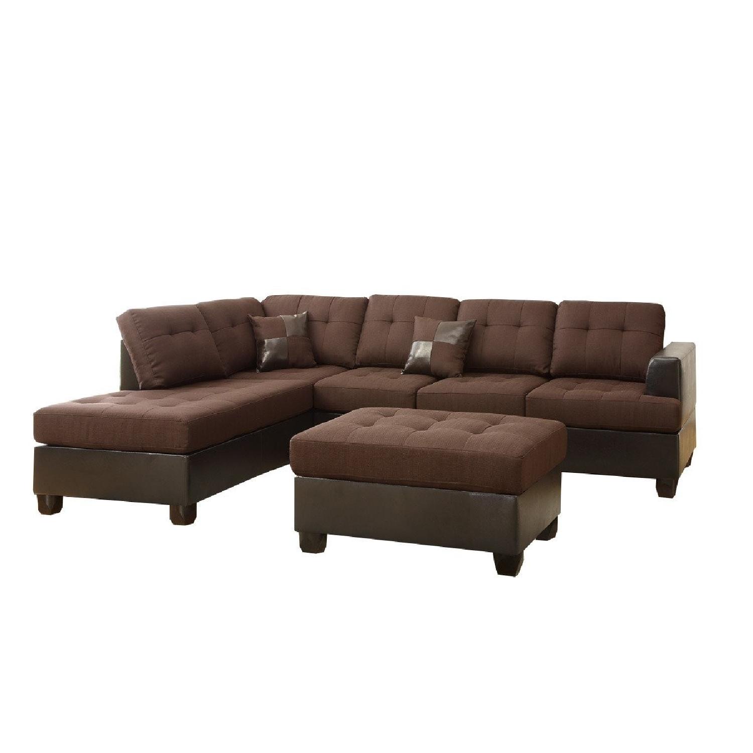 3 Piece Reversible Chaise Sectional Sofa In Brown Aptdeco