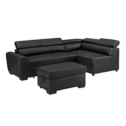 Bellmore 3 Piece Black Leather Sectional Sofa With Left Facing Chaise And Storage Ottoman