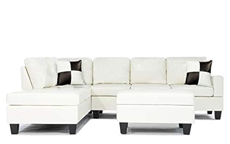 Soft Touch Reversible Pu Leather 3 Piece Sectional Sofa Set White White