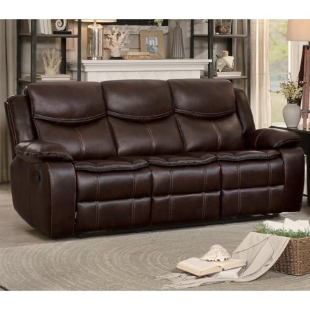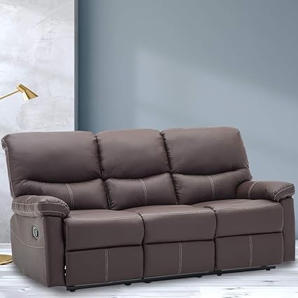 Flieks 3 Seat Living Room Brown Faux Leather Recliner Sofa