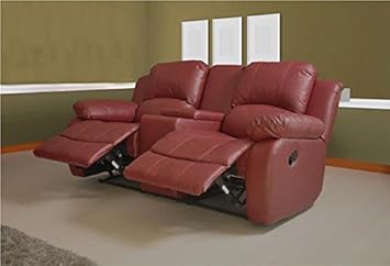 Uk Stock Valencia 2 Seater Leather Recliner Sofa With Drinks