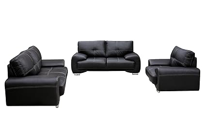 Salon 3 2 1 Garniture De Canapes Lounge Lille Cuir Noir