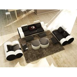 Ensemble Canape Design 3 2 1 Place En Cuir Noir Et Blanc Roma