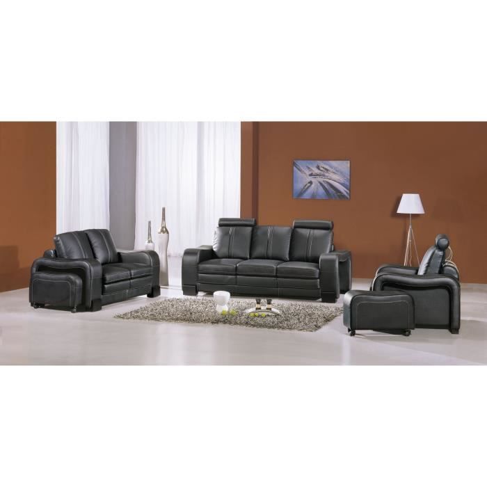 Salon Complet Solaris En Cuir Noir Canape 3 Places Et