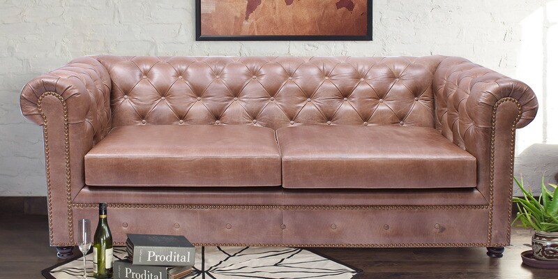 Buy Three Seater Genuine Leather Sofa In Dark Brown Colour