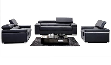 Black Leather 3 Piece Modern Living Room Yi A32b