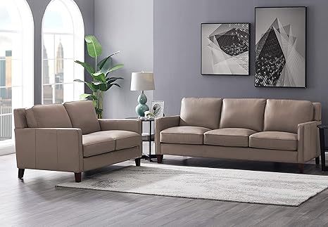 Hydeline Ashby 100 Leather Sofa Set Sofa Loveseat Taupe