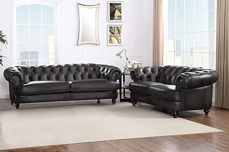 Albany Dark Brown Chesterfield Sofa Loveseat In 100