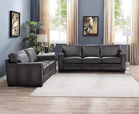 Hydeline Ashby 100 Leather Sofa Set Sofa Loveseat Granite
